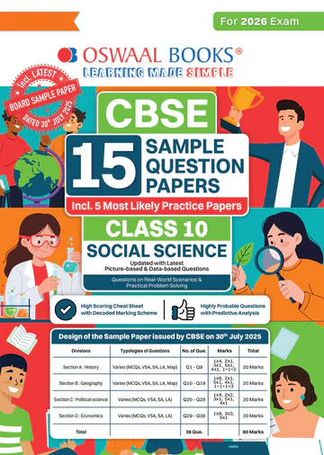 CBSE 15 Sample Question Papers Class 10 Social Science for 2026 Board Exam (As per CBSE Sample Question Paper issued on 30 July 2025), recommended by 2025 CBSE Toppers with Chapter wise Highly Probable Questions। Oswaal।